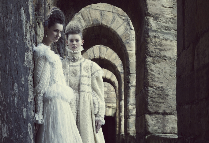 Chanel Pre-Fall 2013 collection around Mary, Queen of Scots. Linlithgow Palace, Scotland. Photographer: Jason Bell, Creative Director Make-up: Peter Phillips